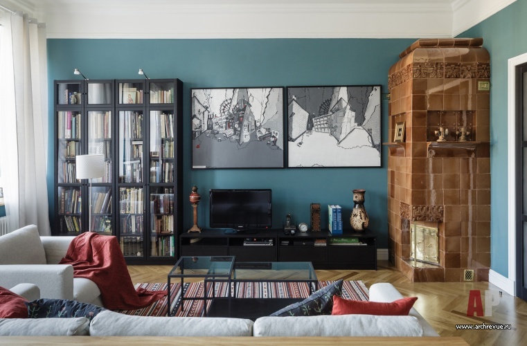 Правда, эффектное пространство, а также гипсовая лепнина, два керамических камина и печь Ракколаниокского гончарного завода находились в плачевном состоянии. «Нам досталась классическая запущенная петербургская коммуналка, но с огромным потенциалом, - вспоминает архитектор. – Мы кропотливо расчистили поздние советские наслоения, убрали перегородки и максимально достоверно восстановили парадный исторический интерьер в старом фонде Петербурга».