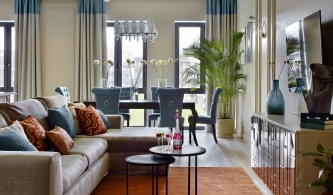 Восстановив помещения в их парадном блеске, вернув интерьерам историческую достоверность, архитектор поняла, что все новые элементы интерьера должны быть подчинены выявившейся мощной теме парадной квартиры начала XX века. «Но создавать историческую стилизацию желания ни у заказчиков, ни у меня не было. Мы решили действовать современными элегантными средствами: широкий паркет, строгие дверные заполнения с текстурным стеклом, в меру декоративные светильники, мелкий орнаментальный рисунок обоев и глубокие спокойные цвета… Поставленной задачи удалось добиться с помощью достаточно простых приемов и материалов и в рамках относительно небольшого бюджета», - отмечает Татьяна Снежкина.