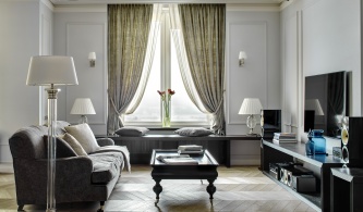 Проектируя эту квартиру для девушки, мы воплотили в жизнь несколько трендов современного жилья для мегаполиса. Прежде всего, это предельно функциональная кухня с небольшой зоной для приготовления пищи. Современные заказчики, особенно молодые, все чаще отказываются от больших кухонь, поскольку предпочитают обедать в ресторанах и кафе или заказывать кейтеринг на дом. В этом случае кухня становится частью гостиной, и перед дизайнером стоит задача максимально аутентично вписать ее в парадный интерьер, растворить в нем. Вторая особенность – отсутствие ТВ-зоны, первоначально мы предлагали разместить телевизионный экран на центральной перегородке, но заказчица категорически отказалась. Среди моих клиентов сейчас немало семей, которые живут без телевизора и им не нужна отдельная телевизионная зона.