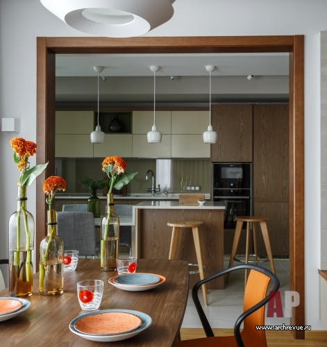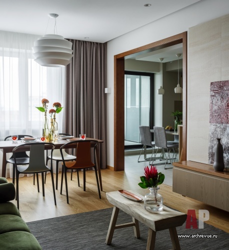 Образ жизни молодой семейной пары, их увлеченность работой и необходимость много времени проводить вне дома вдохновили архитектора Ксению Коновалову на создание современного интерьера со спокойной атмосферой и обилием дерева. Трехкомнатная квартира находится в новом монолитном доме в ближайшем Подмосковье, тишина и покой отличают эти места от суетливой московской действительности.