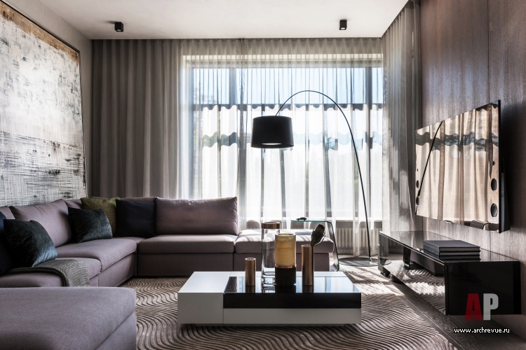 Архитектурная композиция визуально усложняет небольшое общее помещение и дает ощущение современного, открытого в мир жилого пространства.