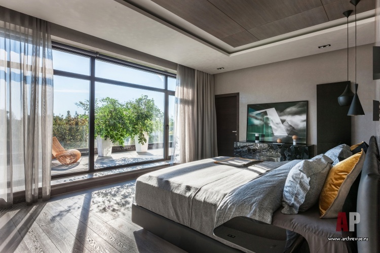 Спальня кровать Bodema, прикроватные столики Sangiacomo, комод Capo D’Opera