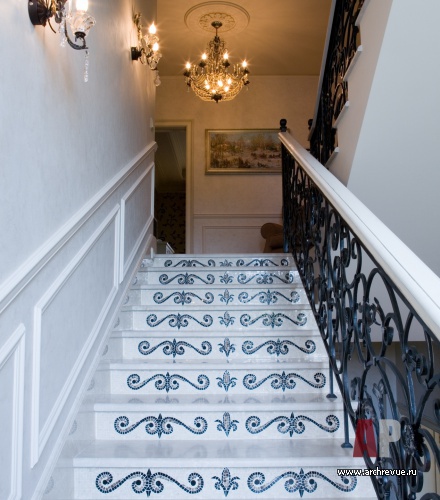 Над этим проектом мы работали долго и скрупулезно. Заказчик принимал самое активное участие в проекте: мы вместе разрабатывали проект, утверждали эскизы ковки для ограждений лестницы, орнаменты мозаики, подбирали мебель и текстиль, детали декора.