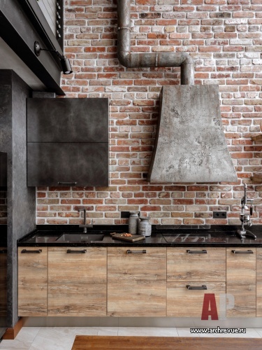 «Стилистику мы определили сразу: индустриальная архитектура – отличная возможность спроектировать интерьер в стиле лофт. Заказчик четко понимал, чего он хочет, основным требованием стал камин с живым огнем. Последний этаж позволил нам сделать дымоход и соорудить каменный камин с лежанкой из оникса. Когда мы начинали работу, то квартира задумывалась как холостяцкое жилье. В процессе стройки все изменилось, даже понадобилась детская для близнецов. У нас была запланирована гостевая, ее и переделали в детскую комнату, так что благодаря изначально грамотному техническому заданию места хватило всем», - рассказывает автор проекта.