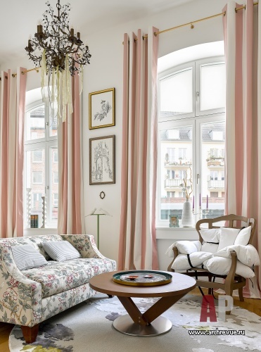 Вдохновением стала традиционная архитектура квартиры с четырехметровыми потолками и арочными окнами, которая заиграла новыми красками благодаря текстилю с динамичным орнаментом и миксу из современных, классических и этнических предметов. Как раз в духе богемного и шумного района Альтштадт.