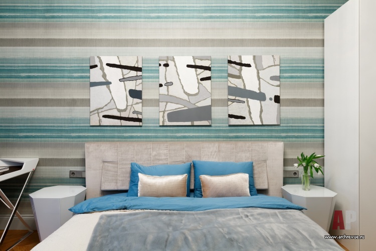 Гостевая спальня кровать Zanotta, письменный стол и стул, шкаф и прикроватные столики Cattelan Italia