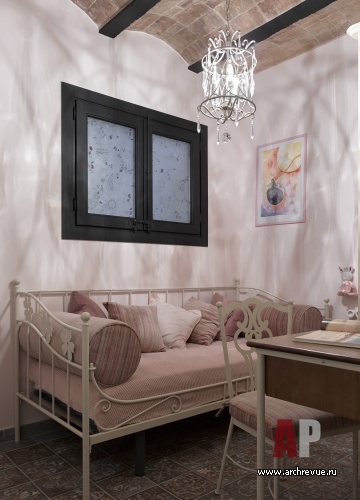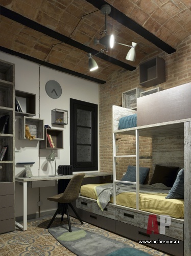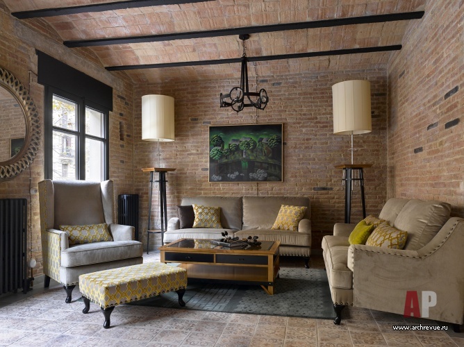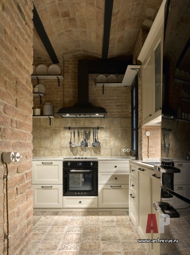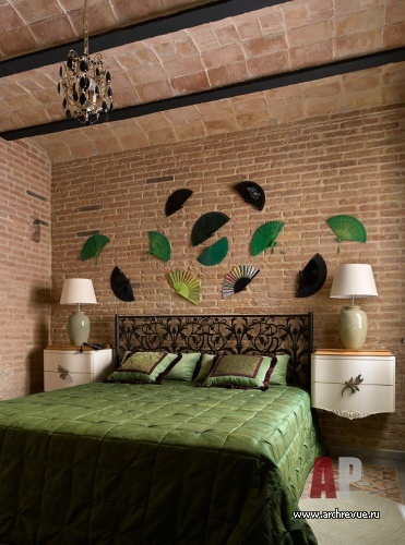 Интерьер квартиры выполнен в традиционной каталонской стилистике. Кирпичные стены, полукруглые потолки, уложенные на железные балки, небольшие ниши в стенах для хранения мелких предметов – типично каталонские элементы.