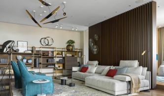 Для заказчиков, которые привыкли жить за городом, дизайнеры студии D-Ideas спроектировали городскую квартиру, которая по функционалу и настроению не уступает частному дому. Семейная пара с взрослыми детьми обратилась с пожеланием объединить две соседние квартиры в единые просторные апартаменты с видом на горы и создать презентабельный неоклассический интерьер. В процессе работы дизайнеры убедили заказчиков сделать интерьер более современным, сместить акценты в сторону актуального дизайна, добавить ярке цветовые пятна и абстрактную живопись.