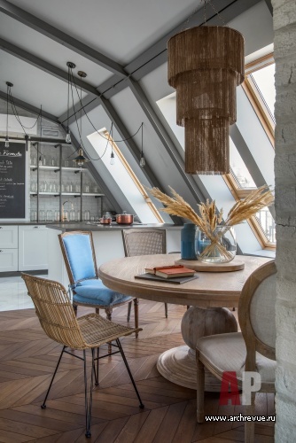 Для семьи с тремя детьми дизайнер Татьяна Бобылева оформила необычную квартиру, расположенную на последнем этаже реконструированного фабричного пространства ЖК «Николаевский дом». Историческое прошлое места и нестандартная архитектура многоуровневой квартиры вдохновили дизайнера на создание интерьера с богемным шиком, характерным для романтичных мансард Парижа и Санкт-Петербурга.