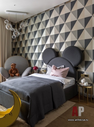 Комната младшей дочери кровать, по эскизам дизайнера, Loffilab; шкаф и настенная композиция сталлаж+комод, «Квинтон»; кресло Sé Collections , прикроватный столик ForsFurniture