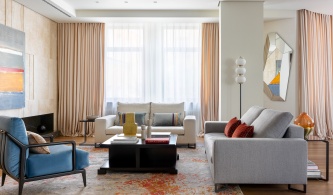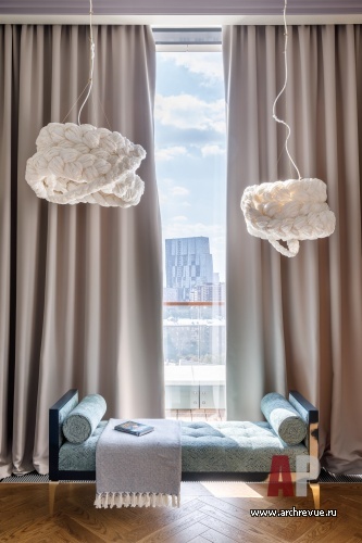 «Для меня в интерьере важна эмоциональная составляющая, она создает настроение и определяет выбор мебели, декора, аксессуаров, - рассказывает Ирина Крашенинникова. – Этот объект был красивым даже «в бетоне»: панорамные окна на две стороны, идеальная геометрия, почти полное отсутствие несущих конструкций и великолепный вид на всю Москву... Много неба… Именно ощущение свободы и близости неба вдохновили на создание пронизанного воздухом светлого пространства, в декоре которого рифмуются и небоскребы Сити, и золотые купола Новодевичьего монастыря, и холодная палитра московского воздуха».