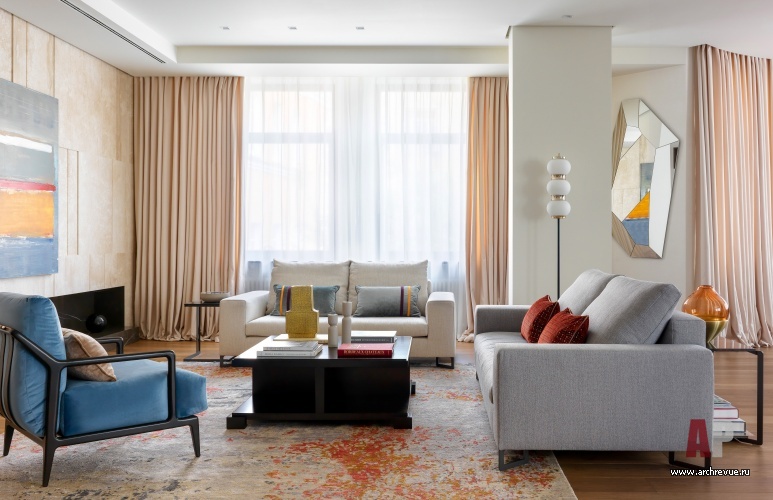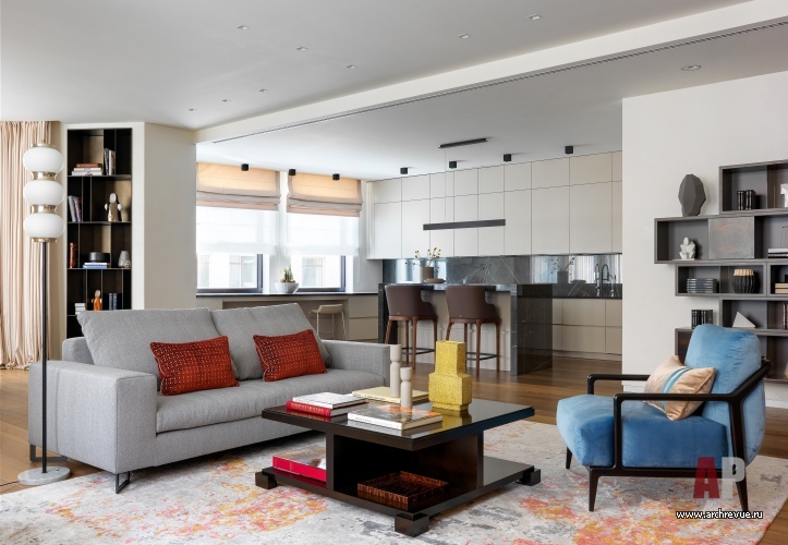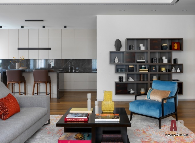 Заказчик поставил задачу создать современный интерьер: светлый, с легким настроением и обилием воздуха. «Изначально клиенты хотели полностью монохромную квартиру, но в процессе работы стали появляться акценты и яркие цветовые пятна в интерьере: мебель, текстиль, искусство», - рассказывает архитектор Светлана Ли.