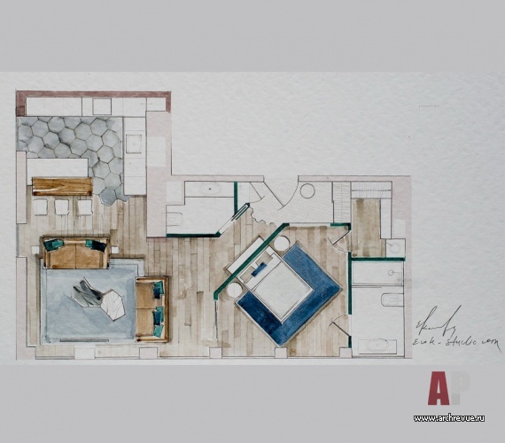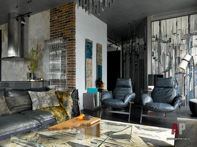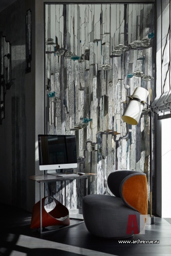 Поэтому перед дизайнером он поставил задачу создать нетривиальный интерьер, вне привычных рамок и правил. «Он попросил его удивить, - рассказывает автор проекта Екатерина Колегова. – Поэтому мы сделали ставку на контрастные фактуры и рукотворные предметы, которые существуют в единственном экземпляре и только здесь. В основе дизайна лежит кинематографический принцип старых итальянских мастеров, когда один кадр неспешно сменяет другой, позволяя полностью погрузиться в наполненную символичными деталями атмосферу».