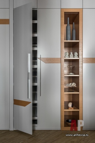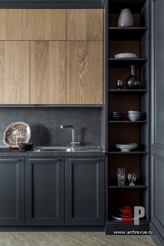Для сына давнего заказчика архитектор Кирилл Егоров спроектировал и оформил небольшую трехкомнатную квартиру в новом доме и лейтмотивом всего интерьера он сделал древнюю японскую игру го. В игре используется разлинованная на квадраты деревянная доска и небольшие игральные камни черного и белого цвета. В итоге минимализм, монохром, природная фактура дерева легли в основу функционального интерьера для одного хозяина.