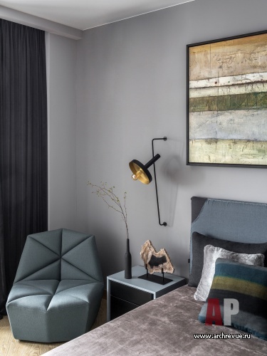 Спальня кровать Bolzan, прикроватные тумбы Orme, кресло Alberta Salotti