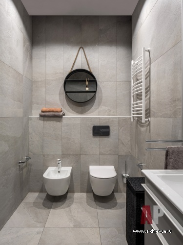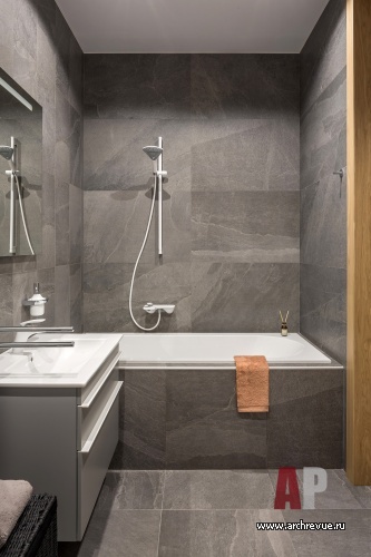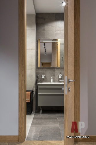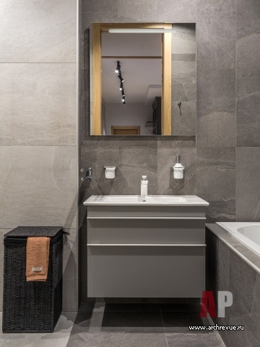 Спальня и детская остались изолированными, их разделила расположенная по центру коридора ванная комната. Она получилась в ходе объединения раздельных санузлов и позволила убрать «лишнюю» дверь из композиции открытого пространства. «В итоге мы добились главного – создали более ясное для восприятия пространство с осевым построением, открытой гостиной-кухней-коридором и изолированным приватным блоком. Чистое, понятное, со строгой геометрией», - отмечает автор проекта.
