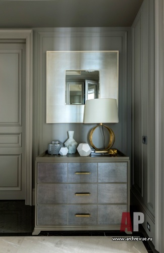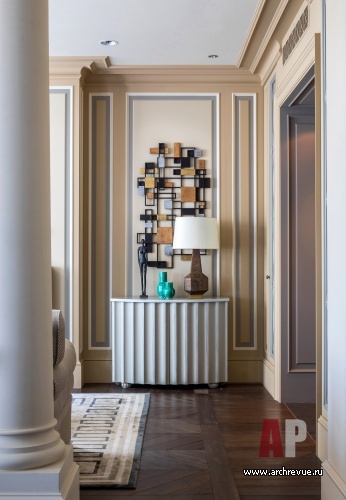 «Молодая семейная пара – приверженцы классического стиля, - рассказывает дизайнер. – Мы с ними создали много красивых классических проектов, но если их загородный дом – это образец добротной классики с плотным декором и антиквариатом, то эта квартира – облегченный вариант традиционного стиля, с элегантной цветовой палитрой, современными отделочными материалами и авторской мебелью».