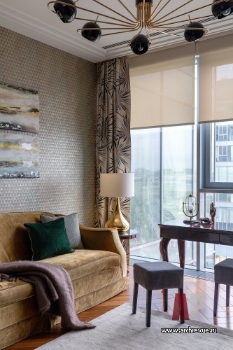 Семейная пара с дочерью-школьницей обратились к архитектору Ксении Садковой с пожеланием создать статусный и зрелищный интерьер в стиле ар-деко в полном соответствии с местом и видом на Цветной бульвар и весь центр Москвы. Архитектурными и дизайнерскими средствами следовало подчеркнуть респектабельный характер недвижимости (современный жилой комплекс «Легенда Цветного») и образ жизни заказчиков. В качестве основной стилистики было выбрано ар-деко.
