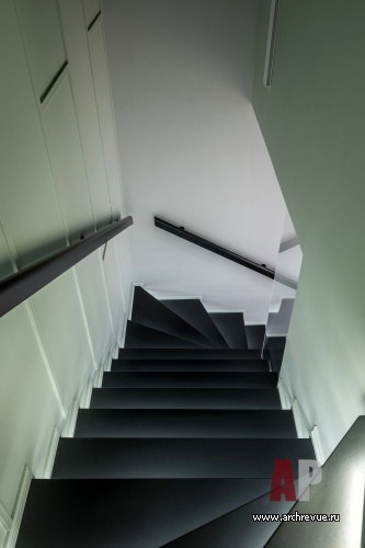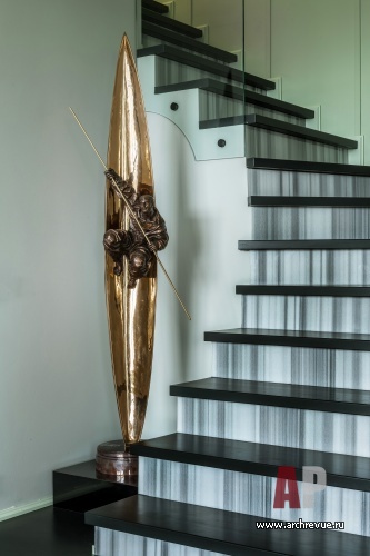 Хотя двухуровневая квартира площадью 170 кв. м и сдавалась застройщиком в свободной планировке, без межкомнатных перегородок, авторам проекта пришлось серьезно поработать над ее структурой. Прежде всего, они расширили лестничный проем и создали удобную и эффектную лестничную группу.
