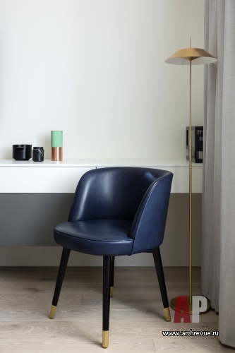 Важную роль играет модульная композиция из встроенных шкафов в гостиной: она служит эффективной системой хранения и вносит в пространство динамику, ритм, позволяет разнообразить строгий минималистский интерьер. В спальнях предпочтение отдано материалам, создающими мягкую, обволакивающую атмосферу. Квартира укомплектована предметами топовых итальянских брендов и авторской мебелью, выполненной по чертежам архитекторов.