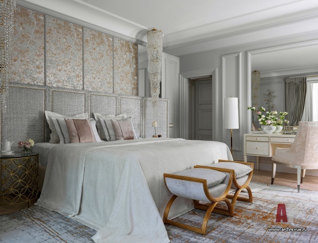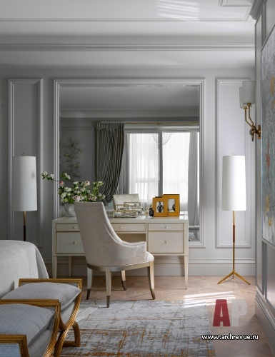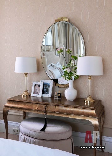 Спальня туалетный столик, стул Caracole, пуфы Theodore Alexander