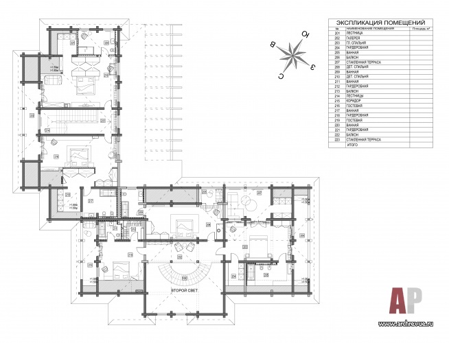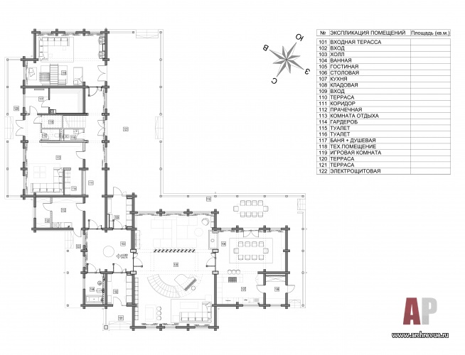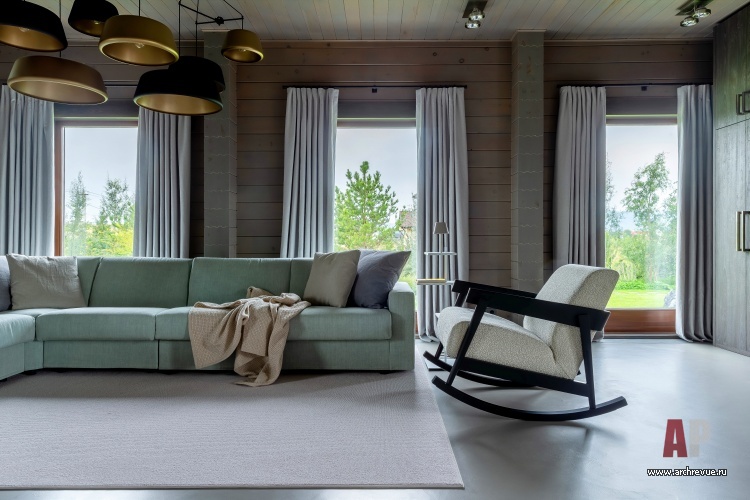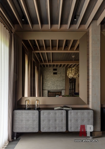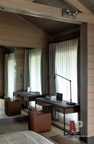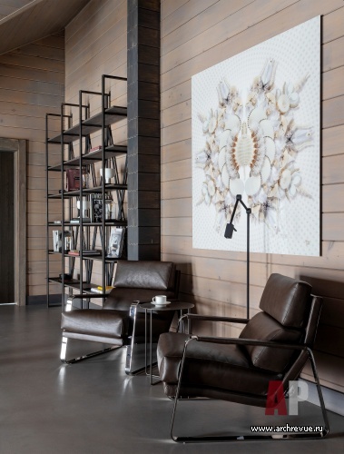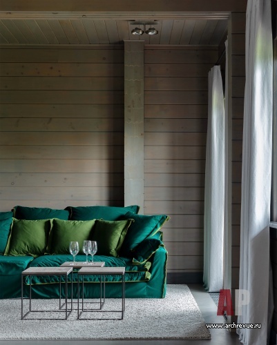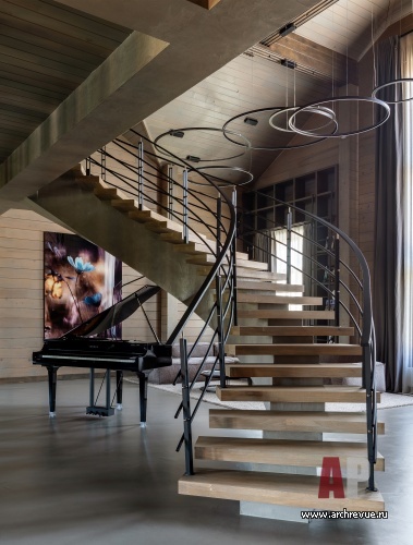 Интерьеры дома – результат творческого тандема российских архитекторов и нидерландских дизайнеров, которые активно участвовали в проектировании и подборе деревянной мебели. Оформление дома перекликается с фасадами, строгость и лаконичность служат основными характеристиками внутреннего наполнения.