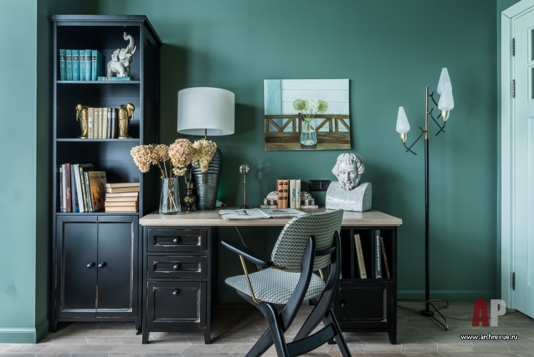 Кабинет винтажный стул, кресло и столик, поставщик Repeat story; письменный стол, стеллаж и шкаф, на заказ, по эскизу дизайнера