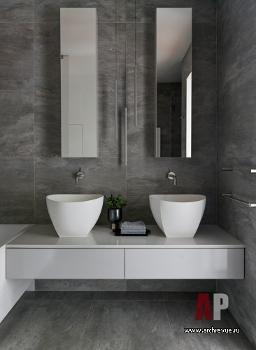 Сантехника ванна Villeroy & Boch (модель Squaro Edge 12), смесители Fantini, раковины Flora Style, Big Funny и ArtCeram, унитазы Laufen, инсталляции Tece, полотенцесушитель «Сунержа»