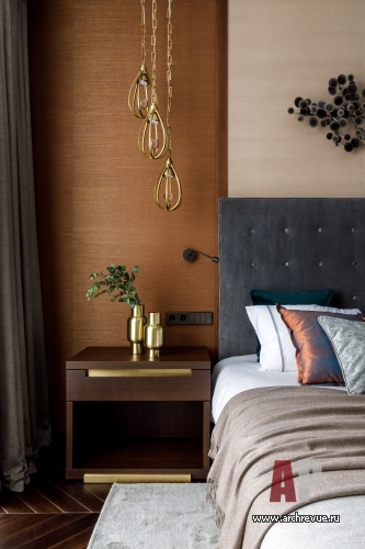 Ориентиром для дизайна стала обстановка дорогих отелей с натуральными материалами, крупным декором и элементами ар-деко. «Хотя мне нравится работать с цветом и фактурами, в этом интерьере клиенты не хотели использовать большую палитру, поэтому я старалась работать на полутонах, используя интересные фактуры и финиши», - рассказывает автор проекта.