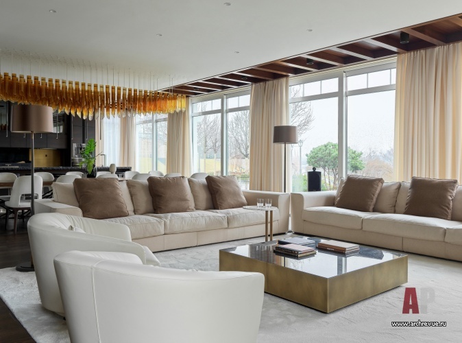 Гостиная диваны Flexform (коллекция Mood), журнальные столики Meridiani, кресла Molteni&C