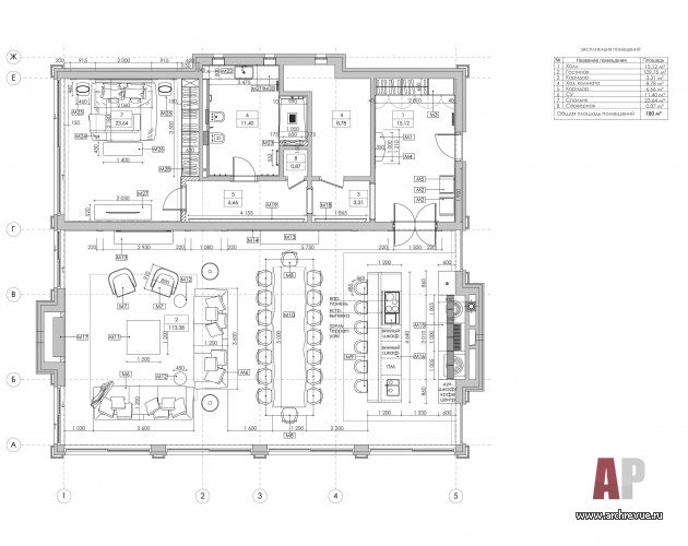 Поэтому, с одной стороны, нужно было создать статусный интерьер, впечатляющее пространство с интересными дизайнерскими решениями. А с другой – разместить необходимый для застолий функционал: профессиональную кухню с казаном, мангалом и тандыром». В итоге получился светлый и динамичный интерьер с природными фактурами и респектабельным дизайном.
