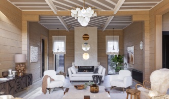 Гостиная диваны Bernhardt, столики Universal Explore Home, кресло Theodore Alexander, тумба под ТВ Lexington; рабочее место, на заказ, по эскизам дизайнеров