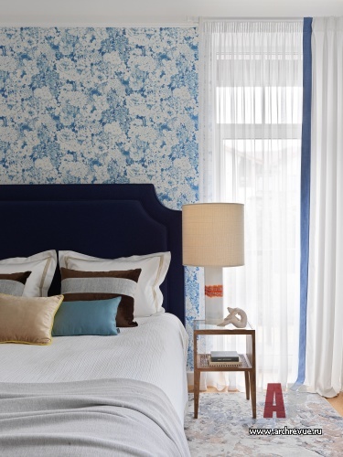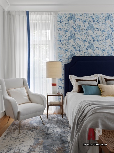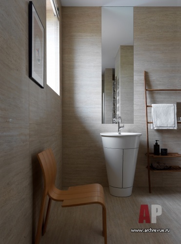 Из общественных помещений, а также комнаты отдыха при домашнем СПА, предусмотрен выход на большую открытую террасу с лаунджем и летней столовой. На втором этаже находятся приватные помещения: кабинет с балконом, хозяйская спальня с ванной, гардеробной и будуаром хозяйки, детская и две выделенные автономным блоком гостевые спальни. Все помещения объединяет холл-библиотека, выполняющая функцию приватной гостиной. Логика движения по дому максимально естественная, на интуитивном уровне: к заказчикам часто приезжают гости, и было важно разделить потоки и сделать так, чтобы передвижение в пространстве не доставляло неудобств ни хозяевам, ни гостям.