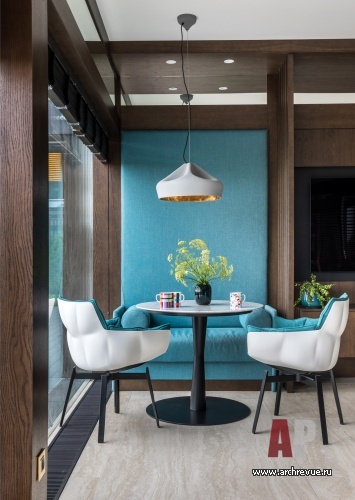 Столовая обеденный стол Maxalto (модель Хilos), стулья Draenert (модель Dexter), диван Moroso (модель New-tone), стеллаж Fiam (модель Inori)