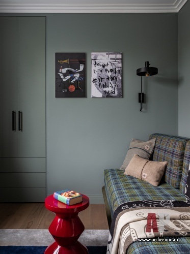 Работа над проектом началась с серьезной перепланировки, поскольку исходный план не соответствовал современным представлениям о комфортном жилье. Заказчику хотелось помимо гостиной иметь большую спальню с гардеробной и полноценную комнату для сына подростка, который часто приезжает к отцу. А в его отсутствие предполагалось, что эта комната будет выполнять функцию кабинета самого заказчика.