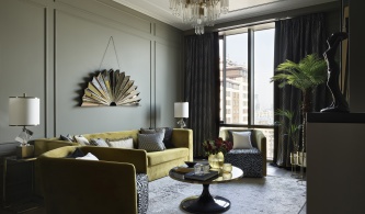 Идея интерьера – современное шале: уютное и в то же время модное с большим количеством воздуха (высокие потолки и раздвижные панорамные окна-витражи, ведущие на террасы). Внутренне пространство воспринимается как продолжение сада, оно максимально открыто на ландшафт и тесно связано с природным окружением в том числе с помощью цветовой палитры, отделочных материалов, мебели.