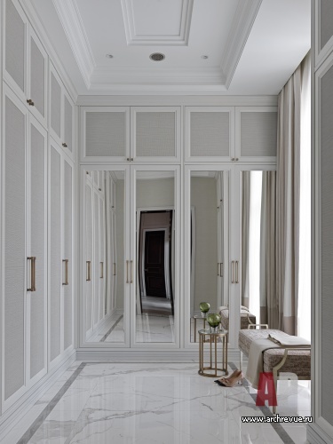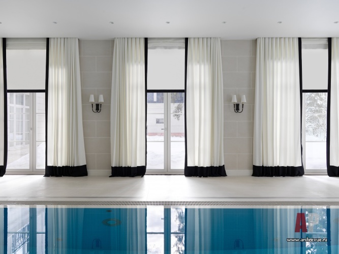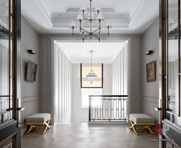 Дизайнер предложила респектабельный интерьер, строгий и уточненный одновременно, с элементами американской классики и ар-деко. Планировку менять не требовалось, на все ремонтные работы закладывался ровно год, а строительство шло с листа. Но за год закончить не удалось (было много индивидуальных изделий и решений), но уже спустя 15 месяцев дом был готов к заселению.