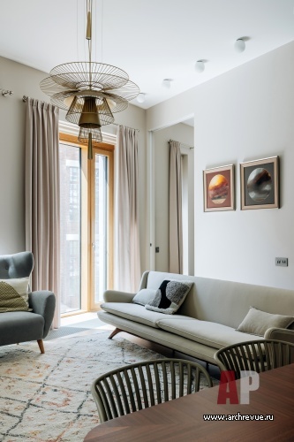Архитектор Юлия Кишкович спроектировала квартиру в ЖК «Садовые кварталы» для своей давней знакомой – большой любительницы винтажной мебели и очень творческой личности, коллекционирующей современную живопись и графику. Квартира архитектору досталась чрезвычайно удачная: 100 кв. м в бетоне, окна в пол, высокие потолки – мечта любого специалиста. «Качество изначального проектирования самого дома настолько удачное, что менять ничего не пришлось. Мы практически полностью вписались в пятна планировки застройщика, подчеркнули исходную архитектуру», - рассказывает автор проекта.