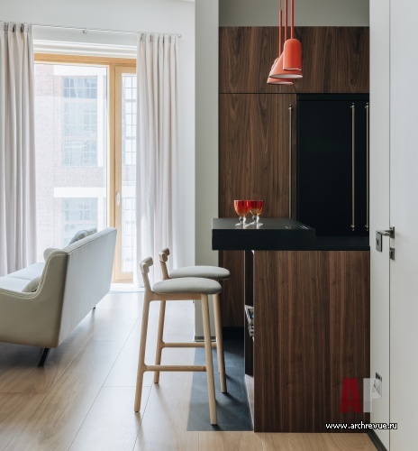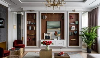 Само проектирование шло легко, мы с клиенткой довольно быстро нашли образ квартиры. Заказчица сама, несмотря на плотный рабочий график, довольно активно участвовала в проектировании, но при этом у нас не было каких-то особенных разногласий, большинство идей мы с ней очень быстро согласовывали. Даже какие-то сложности, а они всегда есть возникают при стройке подобной квартиры, принимались легко и конструктивно.