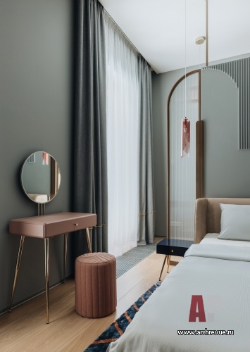 Спальня тумбочки, макияжный стол, пуф La Redoute, комоды The Idea, табурет Zara Home