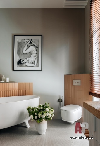 Каких-то строгих пожеланий у заказчицы не было, она доверяла вкусу и стилю архитектора. Из основного – нужно было разместить коллекцию работ, обязательно найти место для большого книжного шкафа из старой квартиры и повесить в ванной картину с девушкой в полосатом купальнике. Из этих деталей, по сути, и вырос этот легкий и тонкий интерьер.