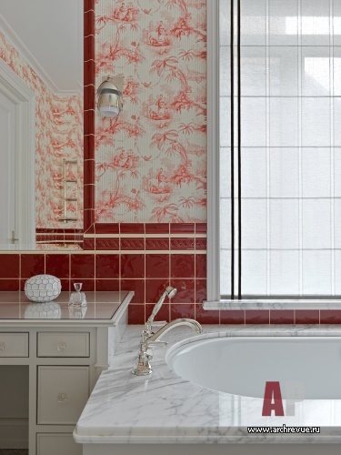Главная спальня и вовсе задумана как современный вариант традиционного будуара: с высокими карнизами, обоями «жуи», кремовыми шторами и элегантной мебелью с филенками, зеркалами и мягкой тканной обивкой. В цветовой палите квартиры достигнут баланс классических цветов – зеленого, красного, небесно-голубого на фоне пастельных оттенков. В оформлении использованы исключительно натуральные материалы: гипсовая лепнина, шпон ореха и дуб, бронза, мрамор, шелк – эффектные и вместе с тем камерные, уютные. Как в дореволюционных домах, когда комфорт семьи был на первом месте.