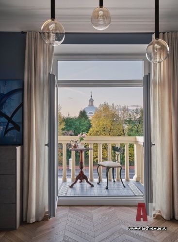 В квартире, которая досталась Ольге, также проживала очень известная академическая семья, она бережно относилась к интерьеру, поэтому в хорошем виде сохранились лепные карнизы, потолочные розетки, шкаф и комод из ценных пород дерева с маркетри, винтажные фарфоровые графины, статуэтки «ЛФЗ», каслинское литье, которые было решено интегрировать в новый интерьер. Помимо исторического прошлого и уникальной архитектуры дом интересен своим расположением – рядом с храмом Благоверного Царевича Дмитрия, вид на который открывается из комнат.