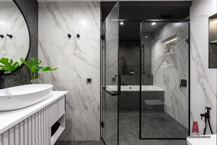 Сантехника ванна Villeroy & Boch, раковины Fubini и Jacob Delafon, унитазы BelBagno, смесители Grohenberg, гигиенический душ Grohe, душевая стойка Hansgrohe, инсталляции Geberit