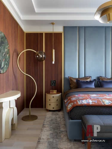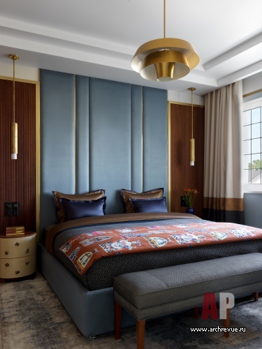 На момент подключения Светланы к проекту второй этаж был практически готов, поэтому в приватных помещениях следовало действовать максимально аккуратно и точечно. Доводить интерьеры до ума с помощью акцентной мебели, стеновых панелей, текстиля и искусства.