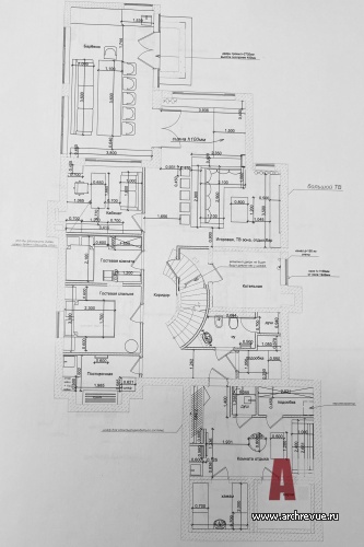 Второй этаж был оставлен без изменений, зато эксплуатируемый цоколь сделан практически с нуля. Теперь здесь находятся баня, хамам, домашний кинотеатр и зона барбекю с большим столом.