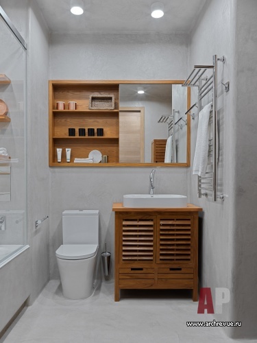 «Сначала я думала отделить приватный блок высокими дверями из металла и стекла, но в процессе реализации мы от этой идеи отказались. Открытая планировка дает больше возможностей, пространственных перспектив и лучше подходит для небольших квартир», - отмечает дизайнер.
