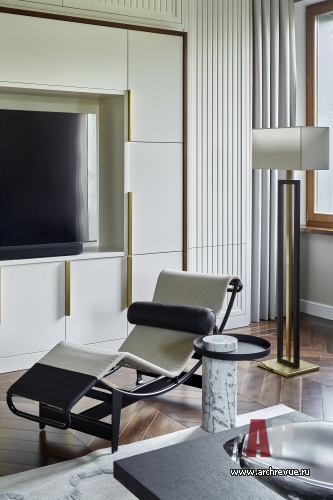 Они хотели эстетичную и функциональную квартиру в приятной светлой гамме, со скрытыми системами хранения и качественной мебелью. Предметы должны были выглядеть красиво не только снаружи, но и внутри: внутренняя отделка шкафов, фурнитура, скрытые элементы – все на высшем уровне. Так родилась идея современной американской классики со свойственными ей красивой архитектурой, респектабельностью и сдержанной элегантностью в деталях. Подбором искусства в проект занималась арт-консультант Наталья Елисеева.