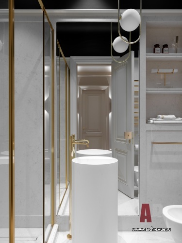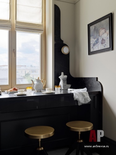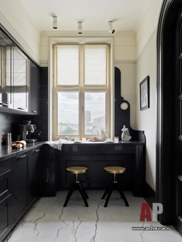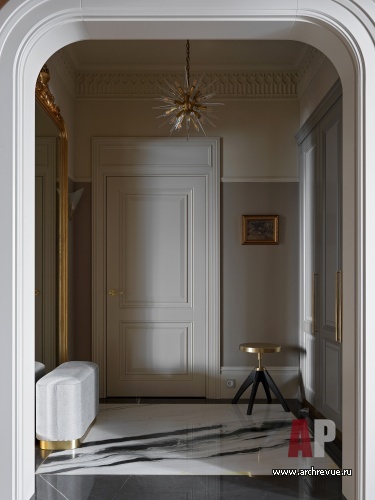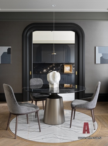 Для зрелой супружеской пары дизайнеры бюро A3Interior создали интерьер вне времени: элегантный, с почти монохромной палитрой и элементами традиционного дизайна, но при этом очень современный и функциональный. «Одним из пожеланий заказчиков было большое количество систем хранения, незаметно интегрированных в пространство. В плане стилистики они нам дали полный карт-блаш», - отмечают авторы проекта.