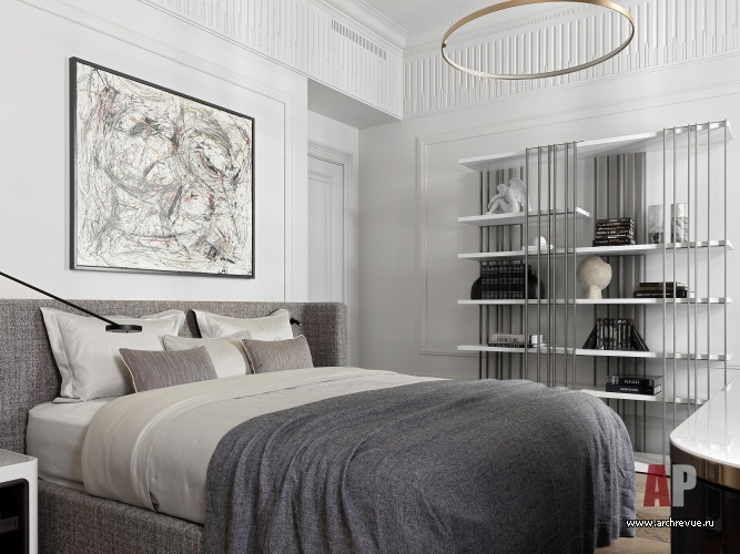 Спальня хозяина кровать, прикроватная тумба, шкаф, на заказ; стеллаж Cattelan Italia